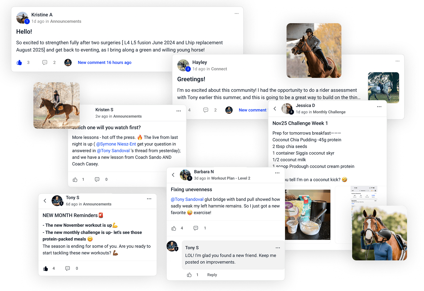 A community for riders who want more than quick fixes -combining expert coaching, accountability, and support to help you build lasting strength and confidence in and out of the saddle.